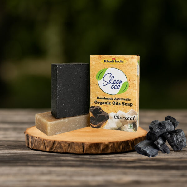 SheenEco Charcoal Soap is a handcrafted Ayurvedic blend made with organic coconut oil, olive oil, and castor oil, specially formulated to offer deep cleansing while keeping your skin moisturized and nourished.